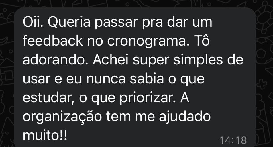 🟨 Entendo totalmente. Por isso o foco é um plano que funcione com 15 a 30 minutos por dia, no seu ritmo. Melhor estudar pouco e com foco, do que tentar fazer tudo de uma vez e desistir.