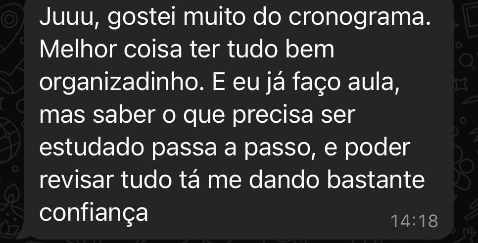 O cronograma é organizado semana a semana, e você sabe exatamente o que estudar em cada uma delas. Ele conta com temas práticos como visita ao médico, vocabulário de restaurante, entrevista de emprego e muito mais. Você não precisa se preocupar nem por 1 segundo em relação ao que estudar.